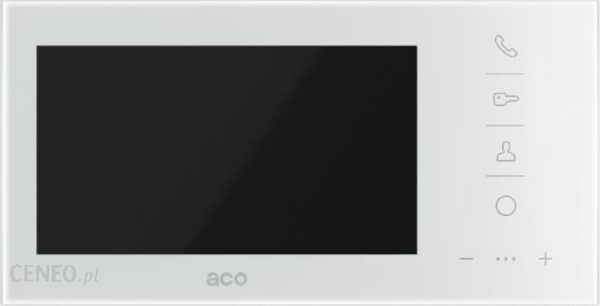 ACO GLASS-PRO-7 WH Monitor Familio COMO PRO 7″PrzeznaczenieSeria GLASS-PRO-7 to kolejna generacja szklanych monitorów 7 calowych do systemu PRO. Zastępuje ona monitory poprzedniej generacji MPRO7.Oprócz zmiany nazwy to zmieniona konstrukcja elektroniki sterującej monitorem, aby zapewnić jeszcze większą niezawodność oraz możliwości urządzenia. Trzecia już generacja tych monitorów, to m.in. obsługa większych (dłuższych) instalacji, większa liczba adresów, zdalne zarządzanie (z dowolnego miejsca systemu), aktualizacja oprogramowania oraz melodyjne dzwonki. Monitor cały czas będzie rozwijany, a dzięki aktualizacjom oprogramowania wszystkie nowe funkcjonalności i możliwości monitora będą także dostępne dla osób, które kupiły już wcześniej produkt.Wideomonitor z płaskim, szklanym frontem, głośnomówiący z kolorowym wyświetlaczem 7″ i dotykowymi ikonami funkcyjnymi.Odbiorniki ACO to solidne urządzenia, wykonane z najwyższej jakości materiałów, funkcjonalne i łatwe w obsłudze.Niezawodność, innowacyjność i trwałość to znaki rozpoznawcze marki ACO.Specyfikacja technicznaKolor : Biały (WH) Wyświetlacz LCD 7″ kolorowyRozdzielczość 800x480Sposób montażu NatynkowyWymiary (mm) 237x121x25Typ instalacji Cyfrowysystem PRO: skrętka cat. 5e lub 6Zasilanie 15V DC / 300mAPobór mocy w trybie czuwania ~ 0,4WWejścia 5 x złącza śrubowe rozłączalne (podłączenie magistrali systemu PRO):- podłączenie sygnału audio: „LINE”- podłączenie zasilania: „+DC” i „-DC”- podłączenie sygnału Video: „V+” i „V-”1 x złącze RJ45:- podłączenie magistrali systemu PRONowość:2 x złącza śrubowe (rozłączalne):- 1x zwierne (NO) np. przycisk „dzwonkowy” – funkcja dzwonka do drzwi Wyjścia Przycisk funkcyjny („F2” – ikona „koło”):- aktywowany w dowolnym momencie- sterowany po magistrali systemu (wymagany opcjonalny moduł przekaźnikowy PRO-I/O podłączony do magistrali systemu) Cechy – nowoczesny, płaski, dotykowy front wykonany ze szkła- odporny na zarysowania, łatwy do utrzymania w czystości- podświetlane ikony dotykowe- kolorowy, wyrazisty obraz- głośnomówiący- 7 stopniowa regulacja głośności- optyczna sygnalizacja wyciszenia i dzwonienia- czysty, pozbawiony zakłóceń dźwięk- intuicyjna i komfortowa obsługa- pełna prywatność połączenia- podgląd obrazu bez aktywnego połączenia- możliwość pracy kilku monitorów pod tym samym adresem- funkcja dzwonka do drzwi (aktywowana za pomocą wbudowanego wejścia lub po magistrali systemu: wymagany opcjonalny moduł PRO-I/O)- interkom: łączność wewnętrzna pomiędzy odbiornikami- niezależny adres główny i interkomu dla każdego wideomonitora- obsługuje adres dzwonienia z puli dostępnych w systemie: 127 adresów (programowany przełącznikami) lub z dostępnych w systemie 1023 adresów (programowanych z komputera za pomocą opcjonalnego interfejsu PRO-USB)- monitor może reagować na każdy adres dzwonienia (po ustawieniu adresu ”0”)- automatyka domowa (przycisk funkcyjny): sterowanie urządzeniami zewnętrznymi, np. bramą, szlabanem, roletami, oświetleniem również bez aktywnego połączenia (wymagany opcjonalny moduł przekaźnikowy PRO-I/O podłączony do magistrali systemu)- funkcja Office – automatyczne otwieranie drzwi – aktywacja w dowolnym momencie- Możliwość podłączenia do 4 kamer dodatkowych (wymagany opcjonalny moduł VIDEO-SW2 MINI–60 podłączony do magistrali systemu)- kompatybilny ze wszystkimi cyfrowymi urządzeniami z grupy Familio/COMO PRONowe funkcje monitora GLASS-PRO-7 3 generacji:- 8 melodyjnych dzwonków- funkcja dzwonka do drzwi (wbudowane zaciski do podłączenia przycisku dzwonkowego)- programowanie ustawień i aktualizacja oprogramowania po magistrali systemu (wymagany interfejs komputerowy PRO-USB)- możliwość dzwonienia interkomowego w obrębie adresu głównego dzwonienia oraz poza adres głównego dzwonienia – łączność zwrotna z innymi lokalami lub np. portierem- kompatybilne z wcześniejszymi generacjami systemu PRO- indywidualny numer każdego urządzenia: DevID- wyszukiwanie wszystkich urządzeń w systemie- indywidualne lub grupowe zarządzanie urządzeniami- możliwość zarządzania urządzeniami i aktualizacji w działającym systemie- jedno oprogramowanie do obsługo wszystkich urządzań: PRO 3 ManagerUdogodnienia osób z niepełnosprawnościami:- akustyczna i optyczna sygnalizacja funkcji monitora- funkcja autootwierania: automatycznie otwieranie drzwi gdy ktoś zadzwoni (funkcja aktywowana w monitorze lub za pomocą opcjonalnego modułu PRO-I/O podłączonego do magistrali systemu)- otwieranie drzwi bez konieczności odbierania rozmowy: za pomocą dodatkowego przycisku lub np. pilota zdalnego sterowania (wymagany opcjonalny moduł PRO-I/O podłączony do magistrali systemu)- możliwość podłączenia dodatkowego urządzenia akustycznego lub świetlnego sygnalizującego dzwonienie (wymagany opcjonalny moduł PRO-I/O podłączony do magistrali systemu) Odkładanie słuchawkiGłośnomówiący, Bez słuchawkowy, Cyfrowy, Aktywny