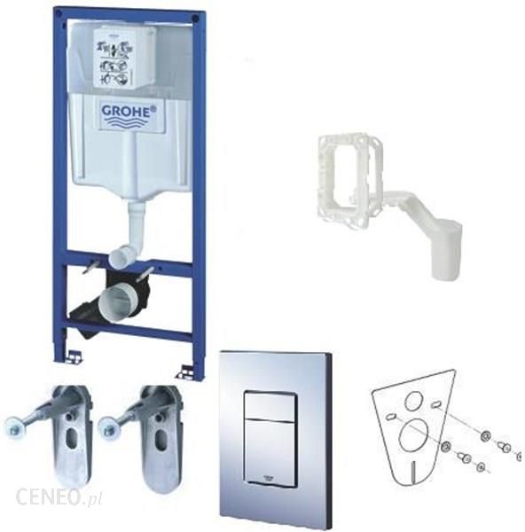Stelaż Rapid SL – 38 528 001 (Rama stalowa, zbiornik 9-6l, I klasa głośności, antyzroszeniowa oslona zbiornika)Przycisk uruchamiający pionowy SKATE COSMOPOLITAN chrom połysk – 38 732 000 (System spłukiwania Dual Flush)System Grohe Fresh 38 796 000 – unikatowy system odświeżania toaletymax: 778Kątowniki wsporniki do montażu przyściennego – 38 558 00M, regulacja odległości od 130 do 230 mmPodkładka wyciszająca do WC – 37 131 000