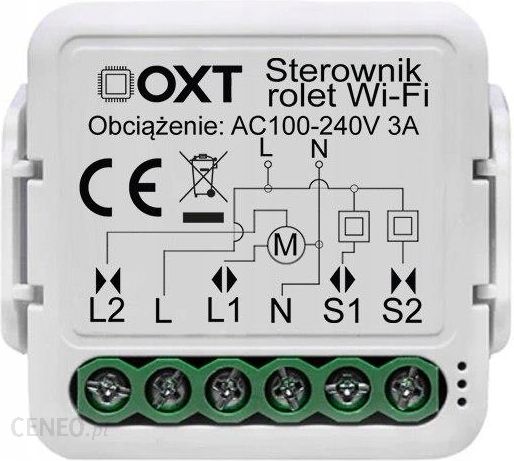 MINI Sterownik Rolet – WiFi – OXTUrządzenie w wersji WiFi. Nie wymaga żadnych dodatkowych bramek i centrali do swojej pracy.==================Nowość – Jedne z najmilejszych modułów na rynku tylko 39.2×39.2mm (43mm z klipsem) !!!Małe wymiary znacząco ułatwiają montaż w puszce oraz miejscach z dużą ilością przewodówTUYA – Najpopularniejsza aplikacja na świecie.W zestawie również klips montażowy na syznę DIN 35mmMały ale wariat :)Produkt umożliwia sterowanie z aplikacji TUYA na smartfonie roletami, markizami, żaluzjami, zasłonami – wszelkimi napędami sterowanymi zasilaniem 230V.Współpraca z klasycznymi ściennymi przełącznikami roletowymi. Sterowanie Góra/Dół poprzez podanie Fazy 230V. Można również zastosować podwójne monostabilne (odbijające) – wtedy sterowanie przez przytrzymanie.Zdalny dostęp z każdego miejsca na ziemi (gdzie tylko masz dostęp do internetu) przy pomocy aplikacji mobilnej TUYA, SmartLife.Aplikacja dostępna w języku polskim zarówno na platformę Android jak i iOS.Urządzenie jest zasilane i steruje silnikami 110-230V ACUrządzenie współpracuje z Tuya Smart – najpopularniejszą aplikacją dla urządzeń IoT (internetu rzeczy) lub zbliżoną aplikacją SmartLife -integracja ponad różnych 11000 urządzeń30 kategorii (sterowanie, klimatyzacja, monitoring, etc.)10000 producentów urządzeń inteligentnychcodziennie rozwijana o nowe funkcje i obsługiwane urządzeniadostępna darmowo dla Android i iOSNa naszych aukcjach odnajdziesz również inne akcesoria kompatybilne z systemem automatyki domu TUAYZapraszamy do zapoznania się z naszą ofertą.HomeAsistant, DomoticzŁatwo zintegrowawszy urządzenie z systemami OpenSource dzięki dostępnym darmowym pluginom dla aplikacji TUYA.Wspólne funkcje w danym pomieszczaniuOczywiście jeśli w danym pomieszczeniu montujemy kilka punktów oświetlenia (np. oczka w suficie) aplikacja pozwala na wspólne sterowanie wszystkimi urządzeniamiMożna jednocześnie zasłonić lub podnieść wszystkie rolety.Wydawaj polecenia głosoweSteruj inteligentnym oświetleniem wydając polecenia głosowe asystentowi Google Assistant lub Amazon Alexa.Korzystaj z wielu możliwości aplikacji TuyaScenariuszeMożesz utworzyć swój własny scenariusz działania i nazwy pod skrótem, który jest włączany jednym kliknięciem.PogodaW zależności od warunków pogodowych możesz wyzwalać zaprogramowane scenariusze np. wschód słońca – gasi światło na podjeździe, zachód słońca – włącza światło na podjeździe.LokalizacjaKiedy zmieni się Twoja lokalizacja to dzięki usłudze geolokalizacji GPS w Twoim telefonie, podjeżdżając wieczorem do domu automatycznie włączy się światło na podjeździe, garażu, ogrodzie.HarmonogramUstawiaj godziny i dni, w których poszczególne zdarzeniatj. scenariusze/automatyzacje mają zostać uruchomione.Interakcja pomiędzy urządzeniamiJedno zaprogramowanie zdarzenie może wpłynąć na działanie innych urządzeń np. jednym włącznikiem światła na pierwszym piętrze możesz wyłączyć światło na parterze, lub zapalenie światła głównego w pokoju gasi światło dekoracyjne… i wiele innychSpecyfikacja:Napięcie znamionowe: 90-250 V AC 50/60 HzProtokół: WiFi 2.4GhzNatężenie prądu: do 3AWymaga pełnego zasilania w puszcze – L i NZestaw zawiera:Moduł OXT mini sterownik rolet TUYAUchwyt montażowyInstrukcja PLDokument sprzedaży